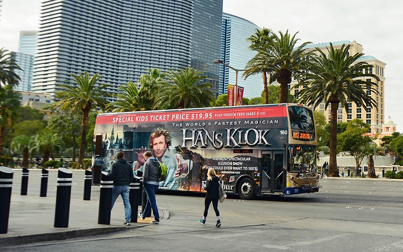 Our design team created a fleet of static moving billboards that hit the Las Vegas Strip, expanding the Hans Klok reach.